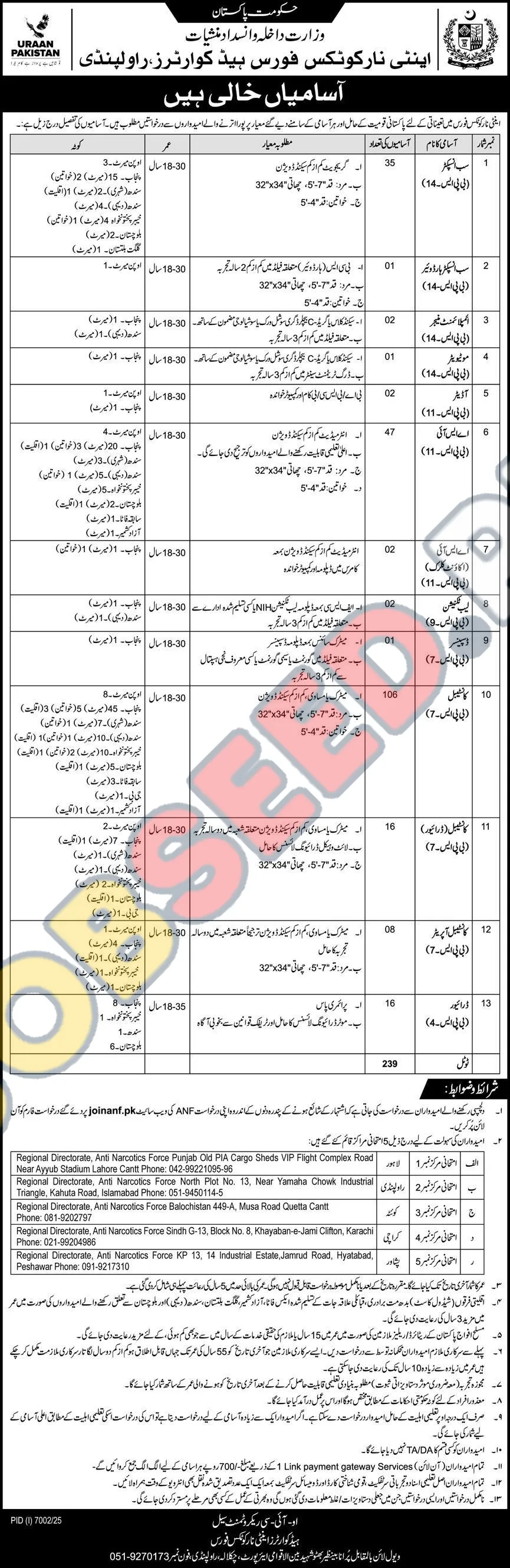 | Job Hiring Organization: | Anti Narcotics Force (ANF) Pakistan |