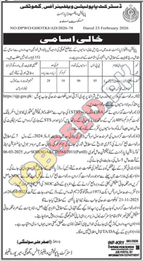 Government Job Openings in Ghotki, Sindh