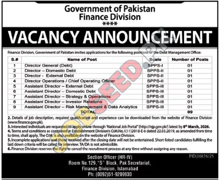 - Visit the official Finance Division website (www.finance.gov.pk) for additional job details and qualification requirements.