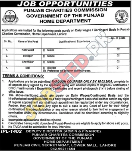 | Job Hiring Organization: | Punjab Charities Commission |