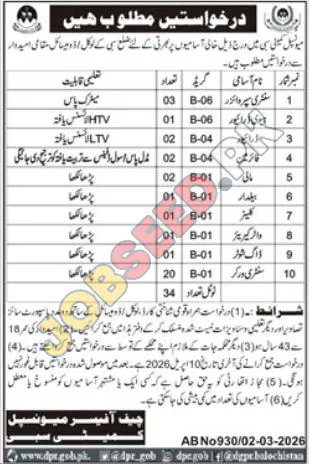 Seeking career opportunities in the government sector? The Municipal Committee of Sibi is hiring for several positions. Successful candidates will benefit from these vacancies. These latest job openings in 2026 offer competitive salaries and employment stability. Candidates residing in the Sibi district are encouraged to apply for various vacancies. If you are seeking a driver job or other jobs, this is a great chance for professional growth and career development.