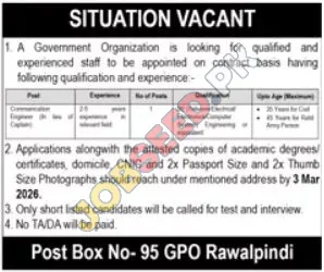 The government sector is opening doors for skilled Communication Engineers. Successful candidates will benefit from these Government Organization jobs Rawalpindi. This contract-based position requires qualified individuals with relevant experience. If you are seeking government jobs and looking for a career with professional growth, submit your application before the deadline in March. Explore these urgent hiring with competitive benefits. This is your chance to step into a career in the public sector with a competitive salary.
