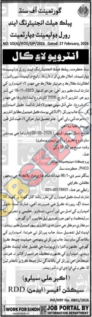 | Job Hiring Organization: | Government of Sindh, Public Health Engineering and Rural Development Department |