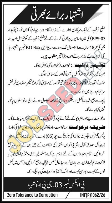 | Job Hiring Organization: | District Police Officer Nowshera |