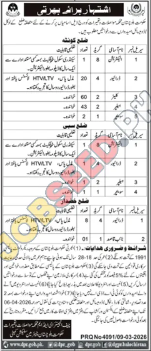 The Government of Balochistan is pleased to announce a significant recruitment drive, offering numerous career opportunities for motivated individuals. This initiative aims to strengthen public service by hiring qualified personnel for essential roles across various departments. The advertisement highlights immediate vacancies for skilled trades, focusing on positions like Electricians and Drivers, which are crucial for the smooth functioning of government operations.