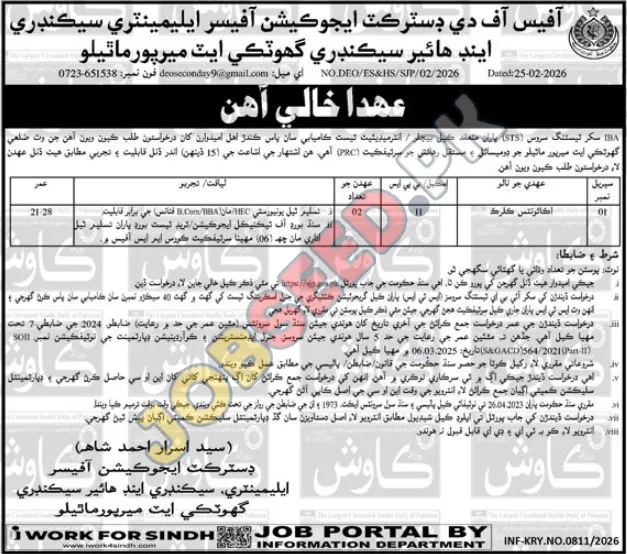 | Job Hiring Organization: | Office of the Executive Officer, Sindh Higher Secondary Education |