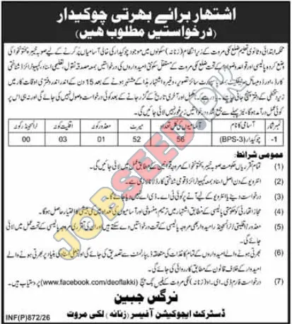 The District Education Office in Laki Marwat is announcing significant government job opportunities exclusively for women. This position represents excellent Government Administration employment opportunities in the region. This is a prime chance to secure a position within the public sector and contribute to educational administration. We are looking for motivated individuals to fill officer roles, offering a pathway to a stable and fulfilling career.