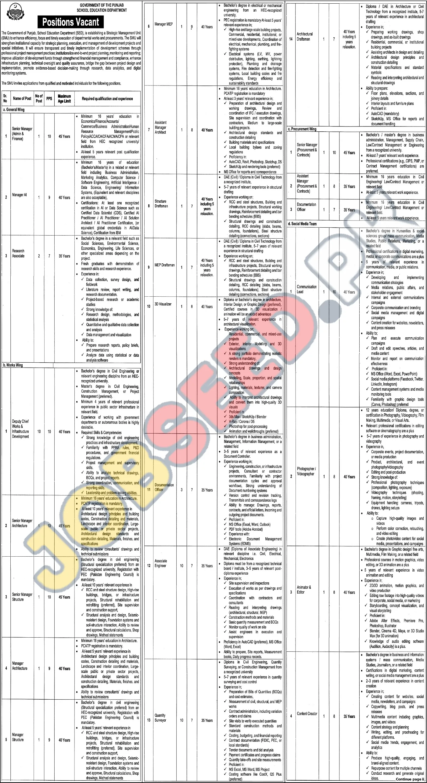The School Education Department (SED), a government entity in Punjab, is hiring Senior Managers for its Strategic Management Unit (SMU). These roles involve strategic planning, project management, and the enhancement of departmental efficiency and functionality. The SED offers job openings with various vacancies, presenting excellent career opportunities within the public sector for qualified candidates.
