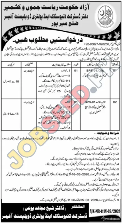 - Application Submission: Interested candidates are required to submit their applications directly to the District Livestock and Poultry Development Officer, Mirpur.