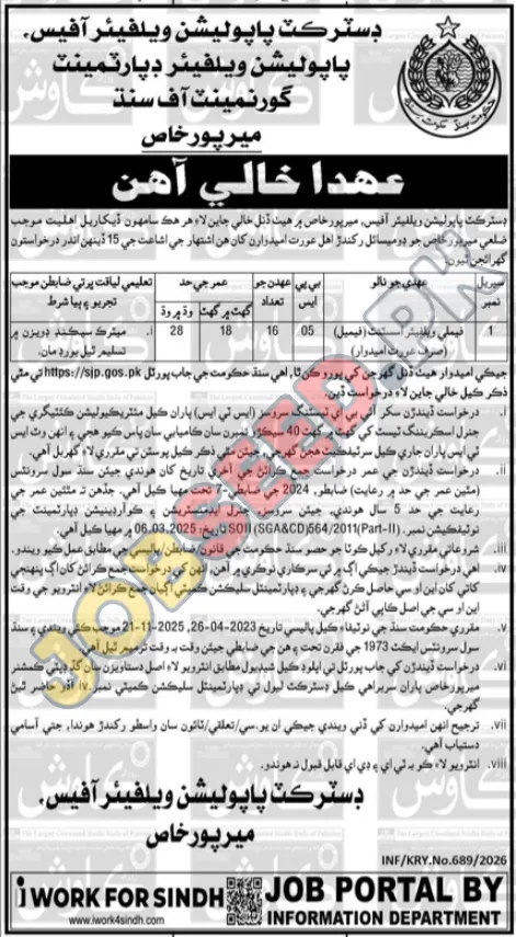 - Application Portal: Interested candidates must apply online through the official government job portal at https://sjp.gos.pk.