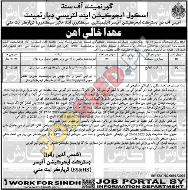 | Job Hiring Organization: | Government of Sindh, Education and Literacy Department |