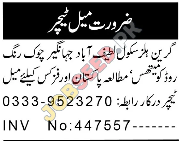 Green Hills School, located in Latif Abad Jahangir Chowk Rang Road, Pakistan, is seeking a passionate and dedicated teacher. This is an excellent opportunity to contribute to a vibrant learning environment and make a positive impact on students' lives. The school is looking for a teacher for subjects like Maths, Pakistan Studies, and Physics.