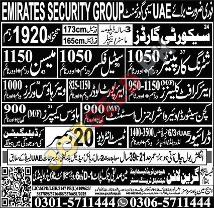Green Line Human Trade Test & Technical Training Center, Abu Dhabi UAE Pakistan invites applications from eligible candidates for the post of Security Guards, Shuttering Carpenter, Aircraft Cleaners, Airport Loader & Washer, House Workers, Kitchen Steward/Washer & General Staff, House Keepers and Driver as per advertisement of 18 December, 2025, published in Express Newspaper. Diploma, Middle, Matric educational qualification will be preferred.