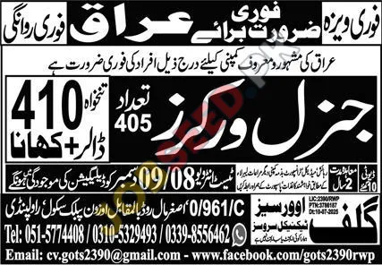 Gulf Overseas Technical Services, Basra Iraq Pakistan invites applications from eligible candidates for the post of General Worker as per advertisement of 02 December, 2025, published in Express Newspaper. Matric educational qualification will be preferred.