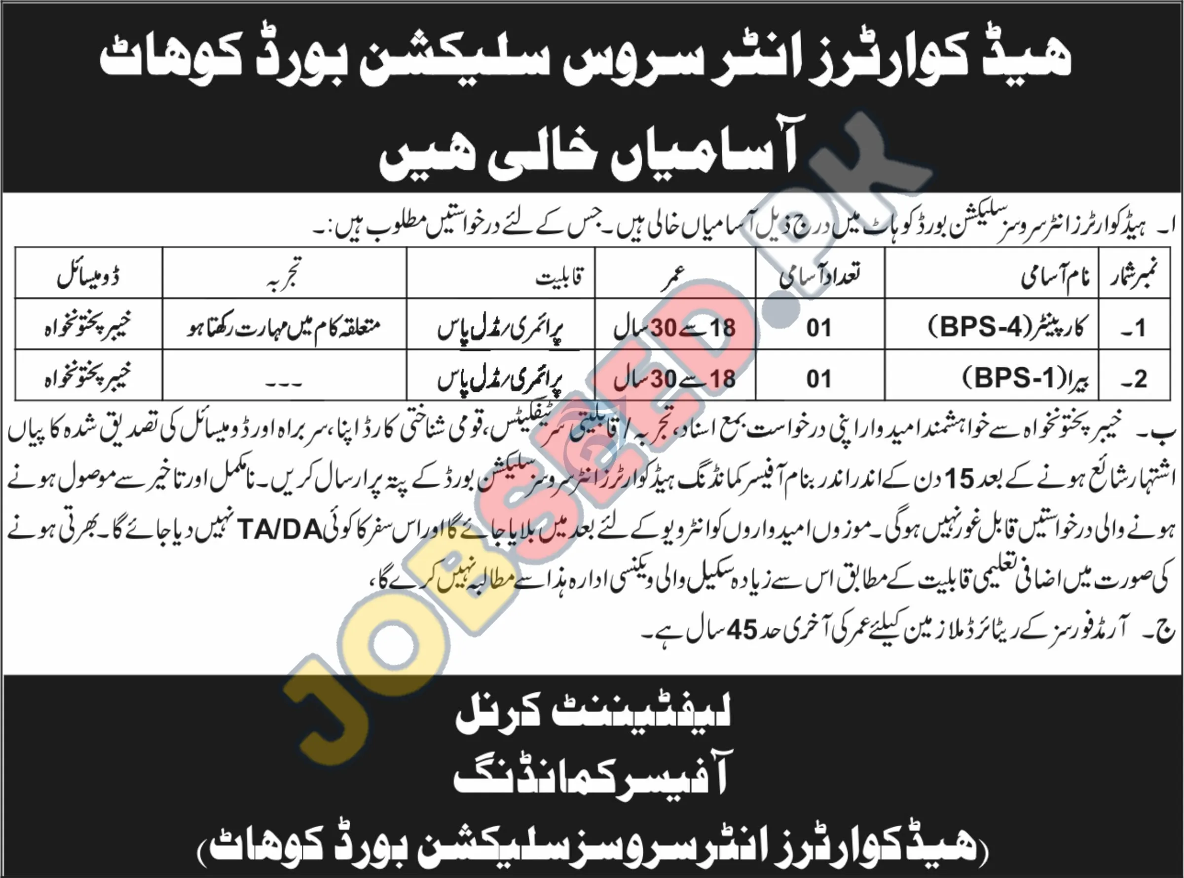 - Deadline: Applications must reach the Headquarters Services Board Kohat within 15 days of the advertisement's publication.