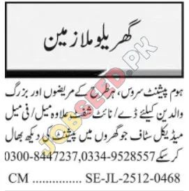 Healthcare Company, Multan Punjab Pakistan invites applications from eligible candidates for the post of Medical Staff (Home Patient Care) and Caregiver (Elderly & Patients) as per advertisement of 17 December, 2025, published in Jang Newspaper. Diploma, Literate educational qualification will be preferred.