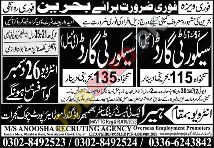 Heera Tech Ni Test & Training Center, Bahrain Bahrain Pakistan invites applications from eligible candidates for the post of Security Guard as per advertisement of 13 December, 2025, published in Express Newspaper. Matric educational qualification will be preferred.