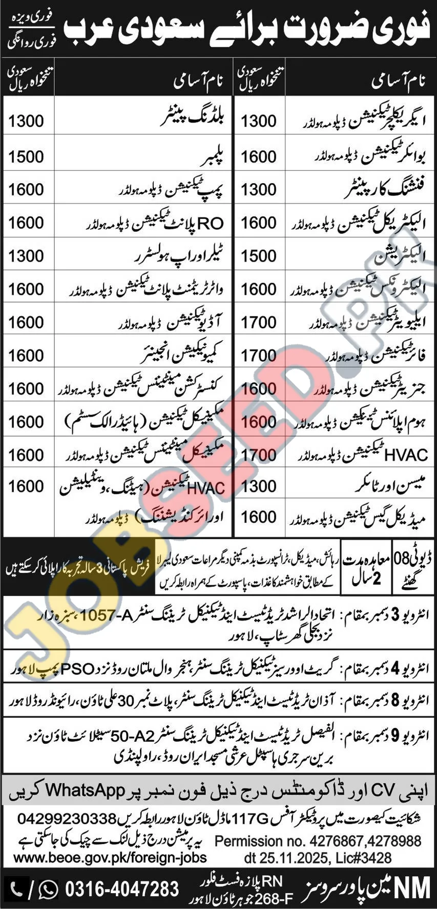 Exciting opportunities await skilled professionals looking to work in Saudi Arabia. We are currently seeking dedicated individuals for various technical roles. These positions offer competitive salaries and benefits as per Saudi labor law. Fresh graduates and experienced candidates with up to 3 years of relevant experience are encouraged to apply. Candidates must be available to work for a duration of 8 hours per day under a 2-year contract.
