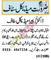 A well-established hospital located in Iqbal Town is currently seeking experienced and registered medical professionals to join its team. The primary requirement is for paramedical staff to work in the hospital's pharmacy. This opportunity is ideal for individuals with prior experience in a hospital or clinical setting who are looking for a stable, non-partnership role.
