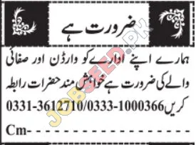 An educational institution is seeking dedicated individuals to fill essential support roles, including Warden and Cleaner. These positions are crucial for maintaining a safe, orderly, and clean environment for students and staff. The Warden role involves supervisory responsibilities, ensuring discipline and proper management within the institution's premises. The Cleaner position focuses on maintaining hygiene standards and overall cleanliness.