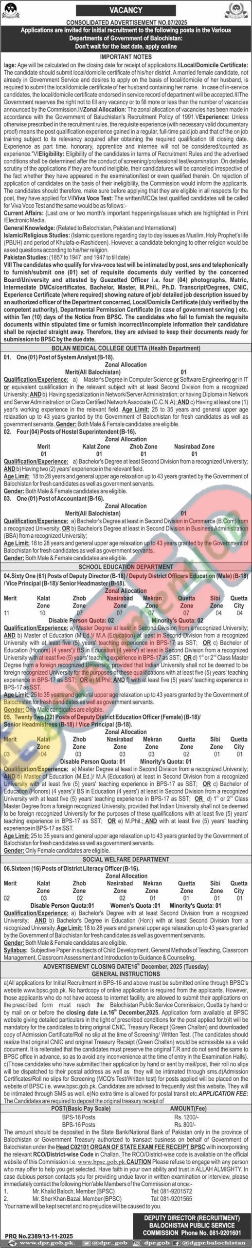 The Balochistan Public Service Commission (BPSC) has announced numerous vacancies across various government departments. We encourage eligible candidates to apply and contribute to the development of Balochistan.