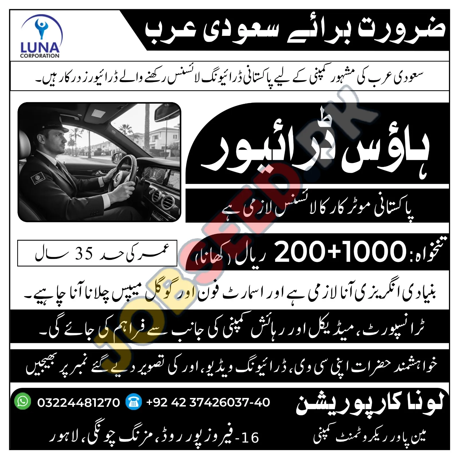 Luna Corporation is seeking skilled drivers for their Saudi Arabia operations. This presents great career development opportunities. The company is offering a competitive salary along with additional perks like transport, medical support, and accommodation. Individuals with a valid Pakistani car driving license are encouraged to apply. The firm presents excellent job openings and career opportunities. Additionally, job vacancies 2026 are available for qualified candidates. Apply today to start your path of professional growth. This is a suitable chance for employment!