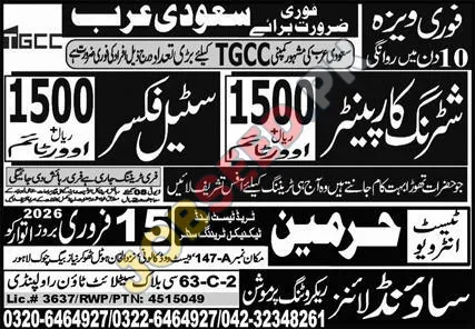 Immediate Hiring: Carpenters and Steel Fixers for Saudi Arabia