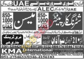 Urgent career opportunities exist in the United Arab Emirates! KMA International seeks skilled Carpenters for ALEC, a renowned company. This private sector hiring offers a competitive salary package to successful candidates.