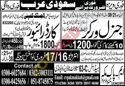 Immediate Hiring for Drivers & General Workers in Saudi Arabia