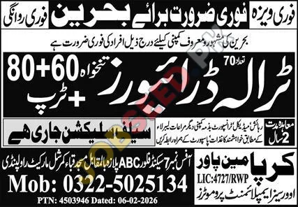 A well-known company in Bahrain urgently requires skilled drivers. This is an excellent opportunity for experienced individuals seeking immediate employment with competitive compensation. Join a reputable organization and kickstart your career. This represents great employment and is perfect for individuals wanting to gain extensive practical knowledge in the field. Apply today to secure your role!
