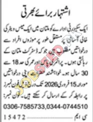 This advertisement is for a driver position within a security firm located in Multan. The role is a permanent one. Prospective applicants must reside in District Multan, possess a Primary education, and fall within the age bracket of 18 to 30 years.