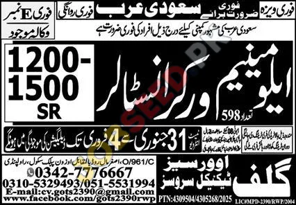 Overseas Technical Services is urgently hiring Installers for a reputable company in Saudi Arabia. This is a fantastic opportunity for individuals seeking immediate employment and professional advancement in the private sector.