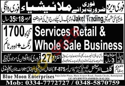 Immediate Hiring for Retail and Wholesale Staff - Work in Malaysia