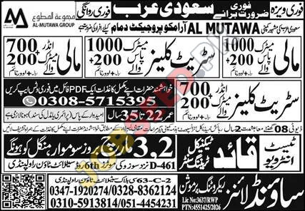 Al-MUTAWA Group is hiring Street Cleaners for a project in Dammam, Saudi Arabia. Explore these latest jobs with competitive benefits. This offers excellent employment prospects with competitive salaries and benefits in the private sector. The positions require individuals with specific qualifications. Apply now for immediate consideration and join a well-established company in Saudi Arabia.