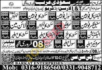 Immediate Hiring: Skilled Professionals for Saudi Arabia with L&T