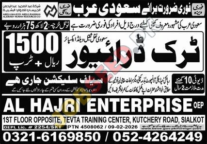 A leading private sector company, Al Hajri Enterprise, is offering immediate openings for Truck Drivers in Saudi Arabia. These positions offer a competitive salary and the chance to work in a dynamic environment. Additionally, career opportunities are available for qualified candidates. Applicants with relevant experience are encouraged to apply. This presents new career opportunities and offers professional growth.