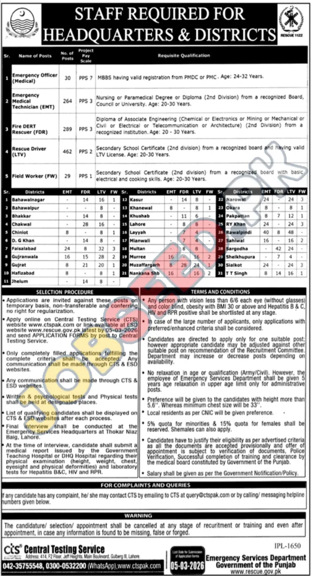 | Job Hiring Organization: | Emergency Services Department, Government of the Punjab |