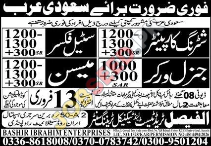 Bashir Ibrahim Enterprises is looking to fill several construction positions in Saudi Arabia. Additionally, Apply for Carpenter in Rawalpindi are available for qualified candidates. These are immediate openings for skilled individuals. Competitive salaries and a supportive work environment characterize this private sector hiring. The available roles provide excellent opportunities for professional growth.