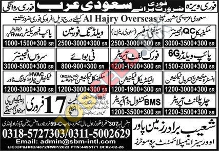 Al Hajry Overseas, a prominent private sector recruitment agency specializing in overseas placements, is currently hiring for numerous positions in Saudi Arabia. This recruitment drive offers immediate employment opportunities to skilled professionals across different fields, providing a platform for professional growth and attractive compensation packages. This is your chance to secure your career with attractive employment offers.