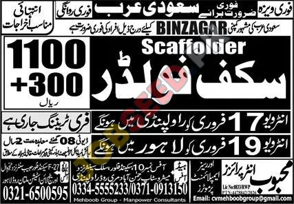 Scaffolder Vacancies in Saudi Arabia