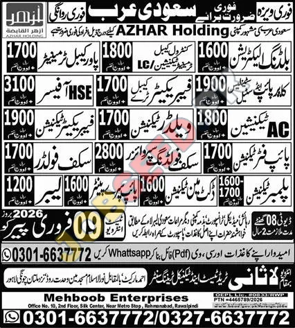 AZHAR Holding, a prominent Saudi Arabian company, is seeking skilled professionals for immediate deployment. This private sector company offers excellent career opportunities for various technical roles. If you're looking for government jobs or latest job openings, this might be right for you.