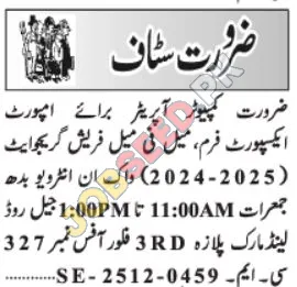 Join the team at Import Export Company in Lahore, Punjab. They are seeking to hire a Import Export Company. This is a Full-Time position. This career opportunity was advertised on 17 December, 2025 in Jang Newspaper. The last date to apply is 02 January, 2026. Don't miss this chance to advance your career with Import Export Company. For more information and to apply online, visit https://www.jobseed.pk.