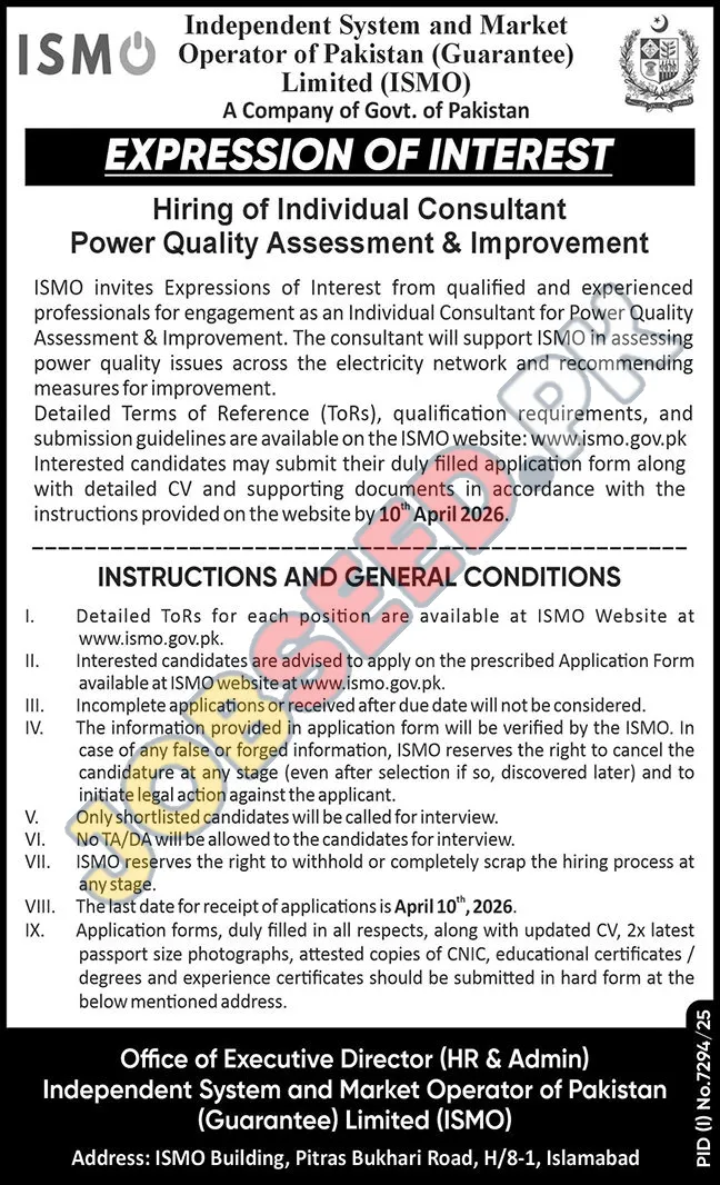 - Obtain Application Form: Detailed Terms of Reference (ToRs), qualification requirements, and application guidelines are exclusively available on the official ISMO website: www.ismo.gov.pk.