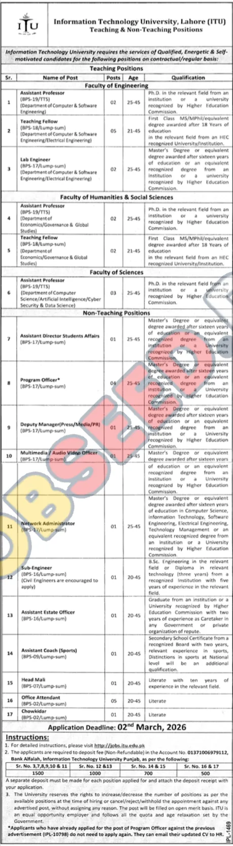 - Detailed Instructions: For comprehensive application guidelines, please visit the official ITU jobs portal at http://jobs.itu.edu.pk.