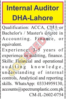 Internal Auditor - DHA Lahore | ACCA, CMA, Finance Careers