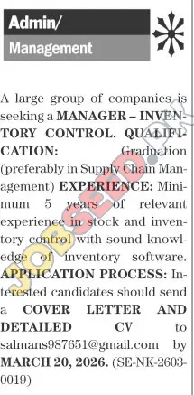 - Job Title: Inventory Control Manager