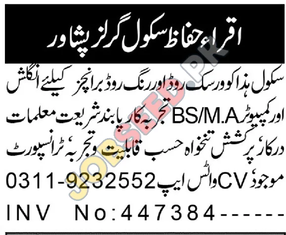 | Job Hiring Organization: | Iqra Huffaz Girls Higher Secondary School |