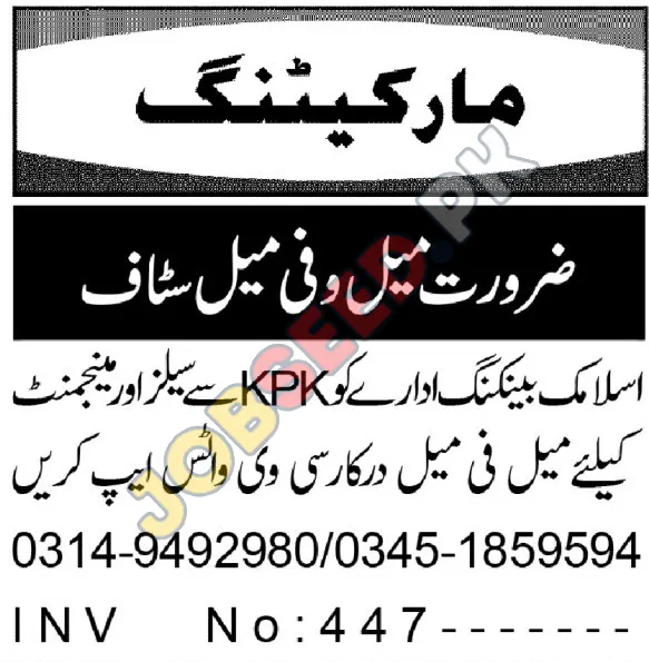 Islamic Banking, Peshawar Khyber Pakhtunkhwa KPK Pakistan invites applications from eligible candidates for the post of Sales and Management Staff as per advertisement of 16 December, 2025, published in Aaj Newspaper. Bachelor educational qualification will be preferred.
