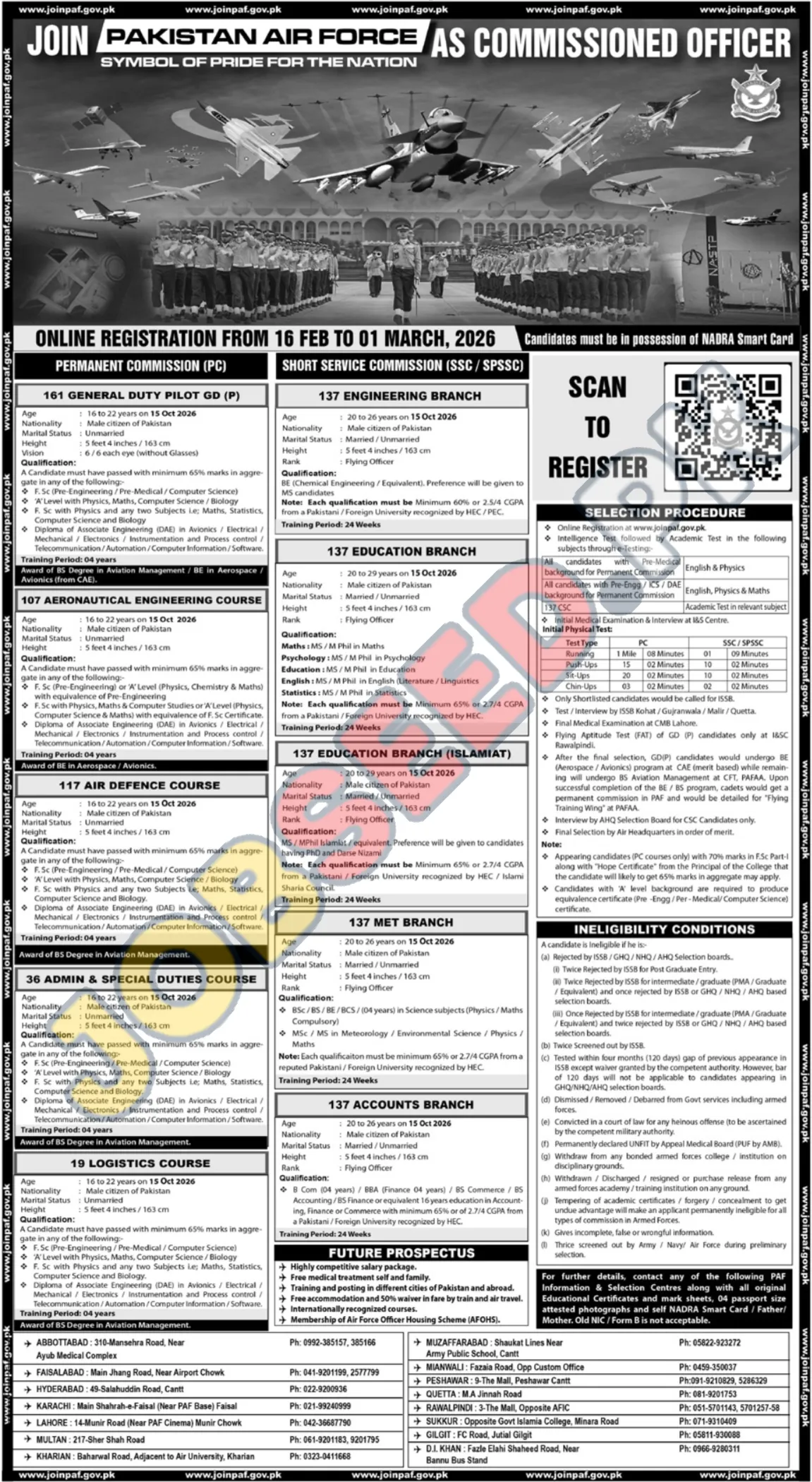 The Pakistan Air Force (PAF) is seeking motivated and qualified individuals to join as Commissioned Officers. This opportunity offers a prestigious career in a dynamic and challenging environment. These government jobs offer exciting career opportunities for young professionals seeking government employment. The PAF provides a competitive salary and excellent benefits, including professional growth, and career development. Apply now to embark on a rewarding career path with the PAF.