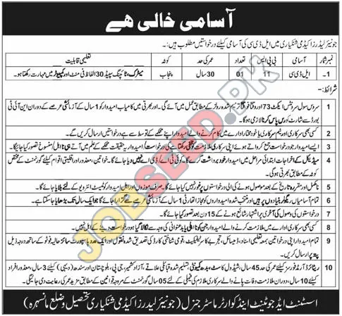 - Application Submission: Interested candidates should send their applications along with all necessary documents to the Assistant Adjutant General, Junior Leader Academy, District Mansehra.